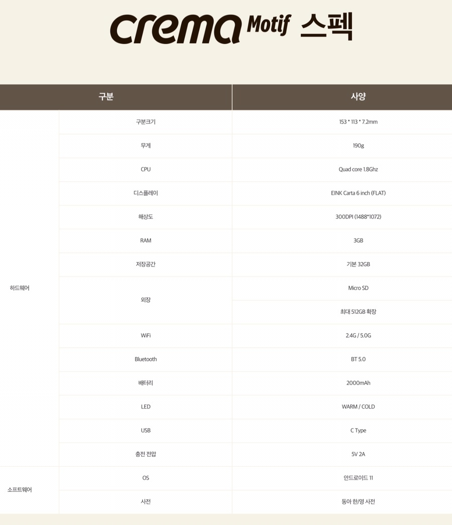 크레마 모티프는 예스24의 24주년을 맞이하여 단독 출시된 e-book 리더기입니다.