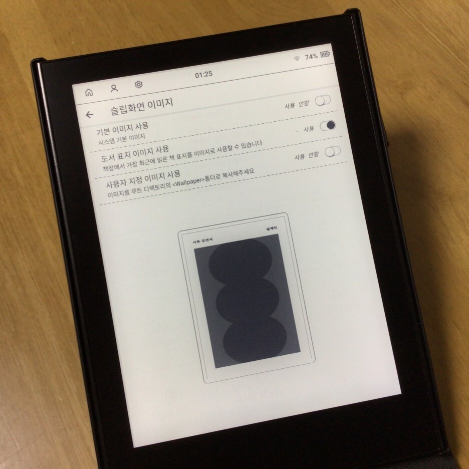 ebook 리더기 하면 또 슬립화면을 빼놓을 수 없죠!